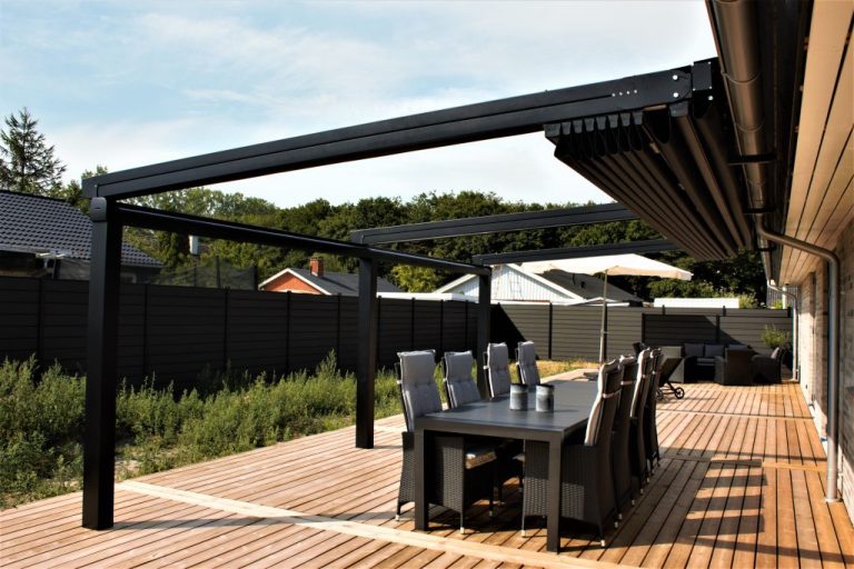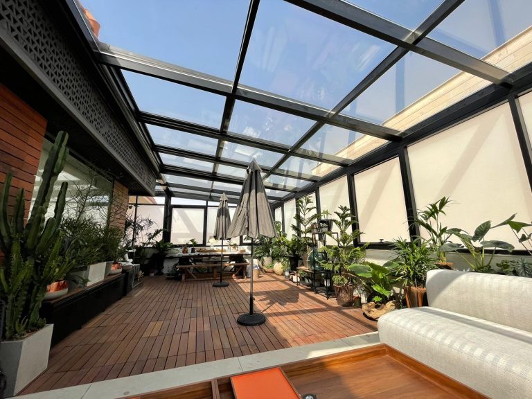 Retractable or bioclimatic pergolas; fix or movable ceilings; awnings; automatic screens or glass systems for facades.