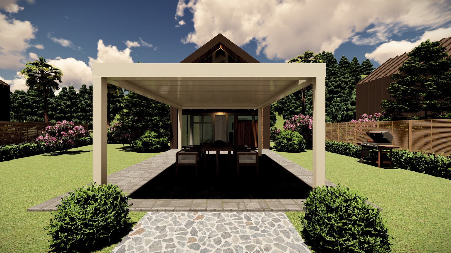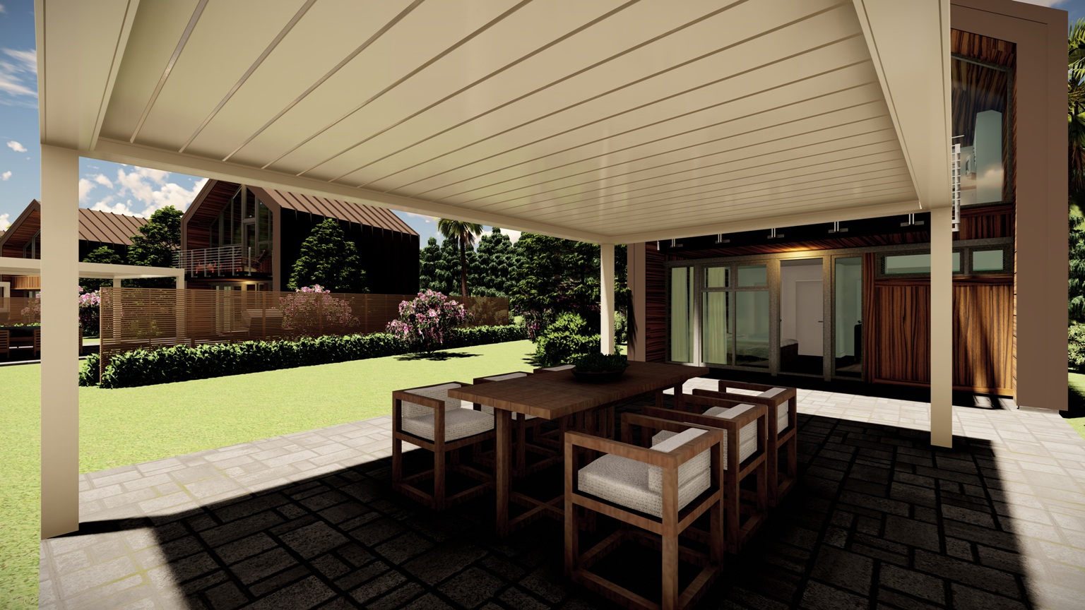 Bio-T bioclimatic pergolas are designed to be a basic solution for bioclimatic roof systems. The roof lamels are just tilted between 0-110 degree.