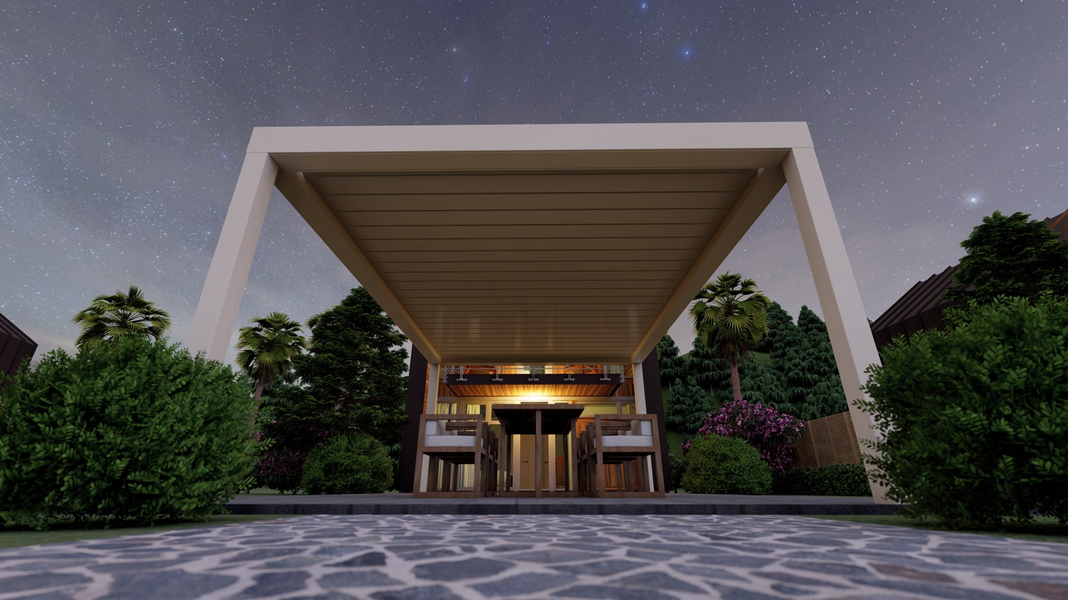 All our bioclimatic pergola systems come with modern led lights.