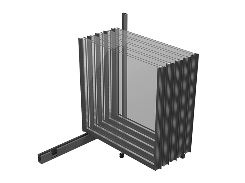 Folding systems, which standard folding glasses or bi-folding doors system aka acordeon glasses can move horizontally, the sections of systems are collected on one side or two sides of the structure. It offers open-closed space pleasure at any moment and time, provide a very soft use thanks to its movement mechanism.