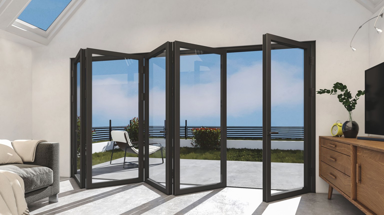 Folding glass systems, which draw attention with their different designs, are designed to adapt to any architectural space and any areas. With their wide usage area, folding glass systems can adapt to all kinds of places with different color options.