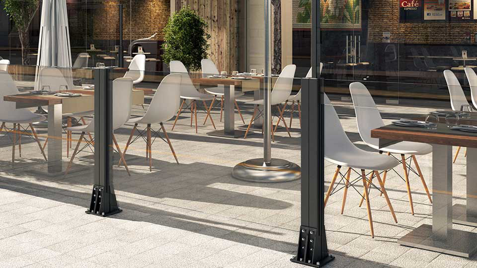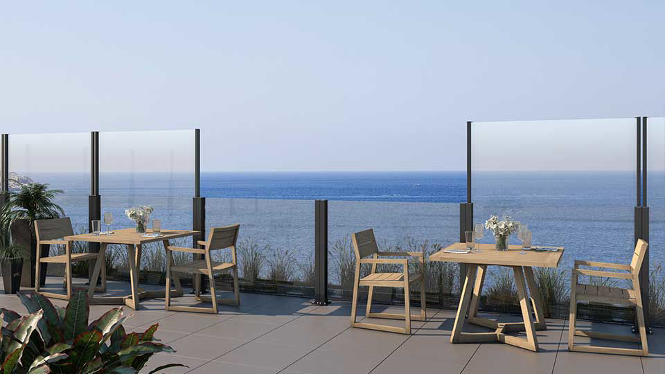 Windblockers are simple manually controlled adjustable glass systems to block winds. The system has two different mechanism, weight-lifting and with piston-lifting types.