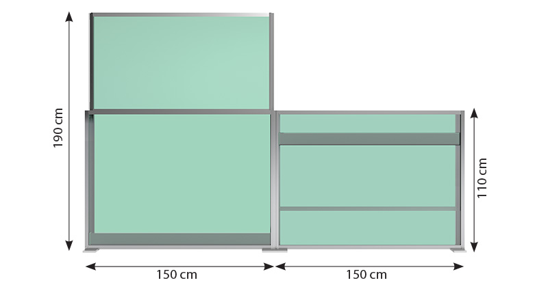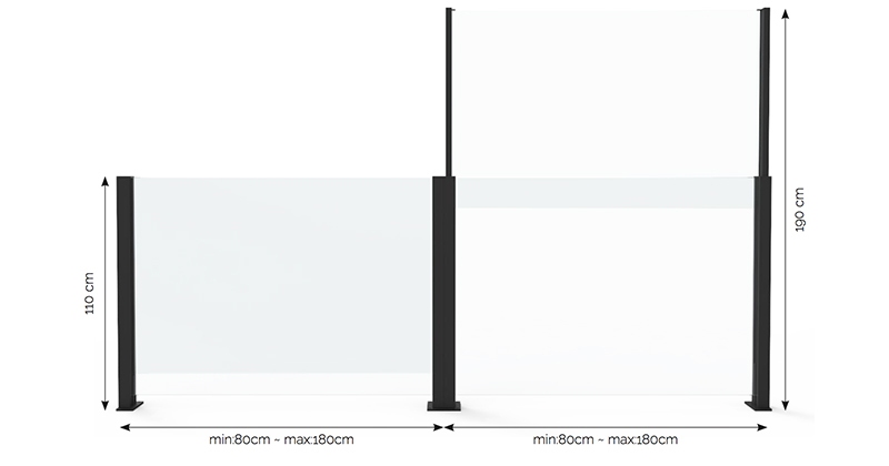 The glass of this system is 5mm tempered glass. Weight-lifting mechanism gives user to stop upper section in any height. Piston-lifting mechanisms provides one-push control which when the upper section pushed down, the pistons lift it to the top.