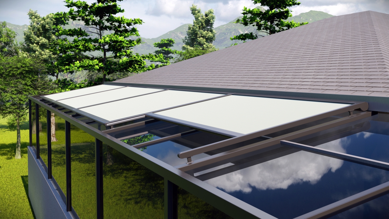 Roof zips, which are controlled by motor are an extremely useful and functional product. It is frequently preferred in fix glass roof systems to block the sunlight when it is needed; it provides shading thanks to the strong fabric options.